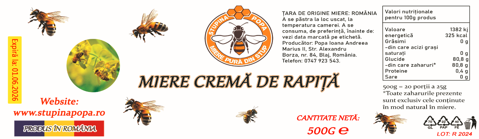 Poza este doar de prezentare. Din cauza problemelor de transport și a numeroaselor borcane sparte, am decis să ambalăm mierea în recipiente de plastic alimentar special, pentru a asigura livrări sigure și produse de calitate.