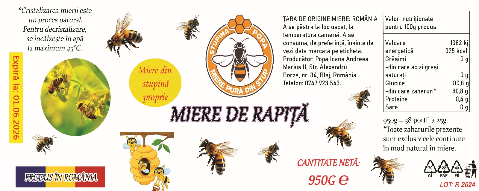 Poza este doar de prezentare. Din cauza problemelor de transport și a numeroaselor borcane sparte, am decis să ambalăm mierea în recipiente de plastic alimentar special, pentru a asigura livrări sigure și produse de calitate.