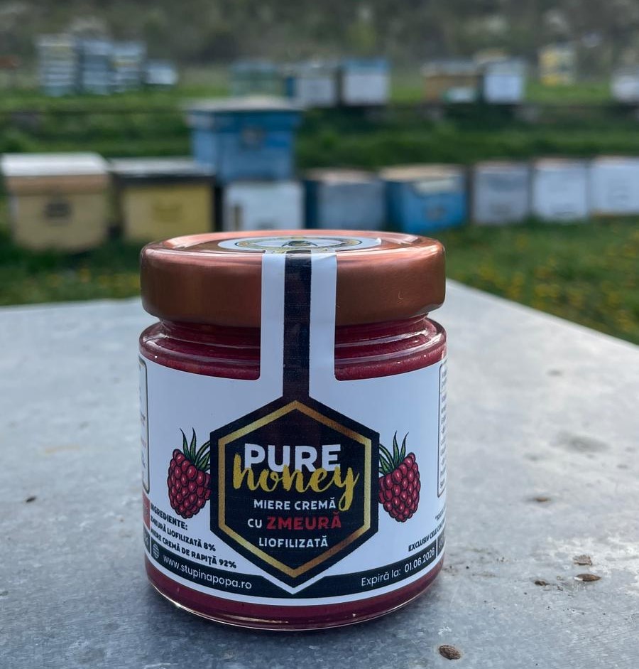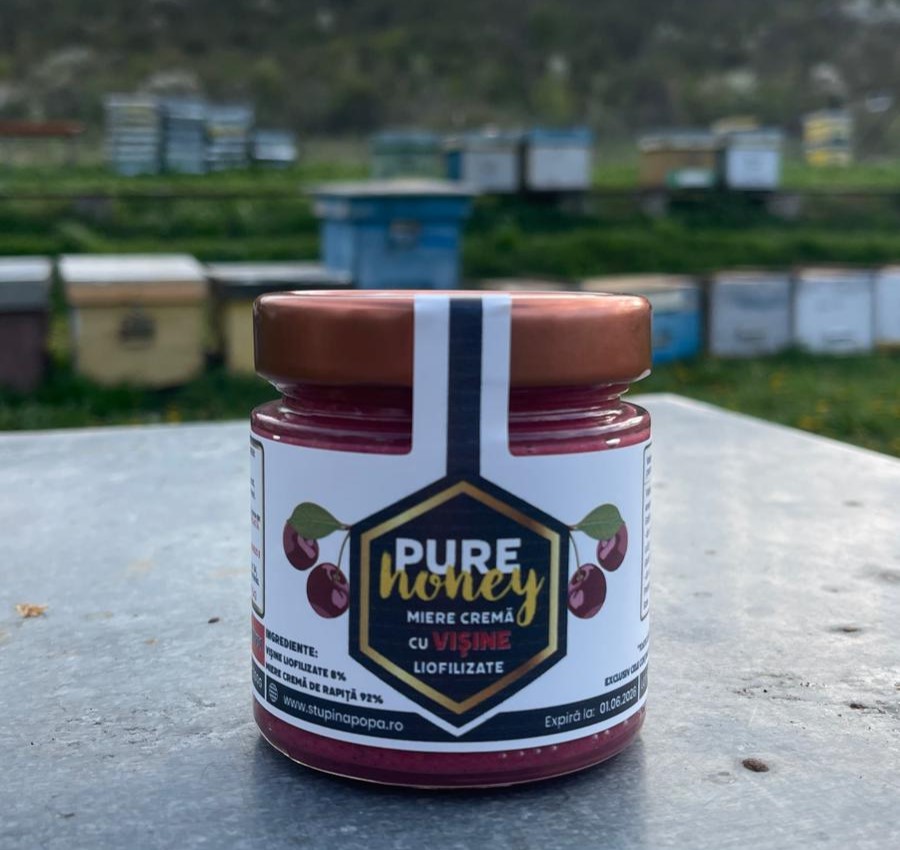 Poza este doar de prezentare. Din cauza problemelor de transport și a numeroaselor borcane sparte, am decis să ambalăm mierea în recipiente de plastic alimentar special, pentru a asigura livrări sigure și produse de calitate.