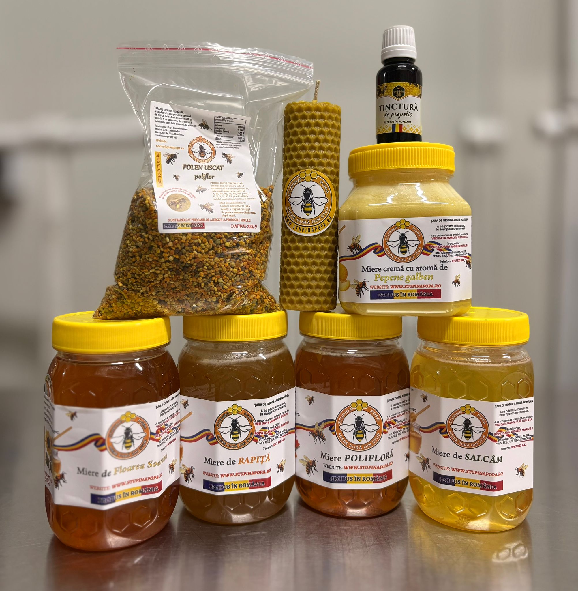 Prețul unui pachet este de 140 lei, se pot adăuga și alte produse la comandă, dacă doriți. Alături de acest pachet veți primi, de asemenea, gratuit și o lumânare personalizată, marca Stupina Popa.